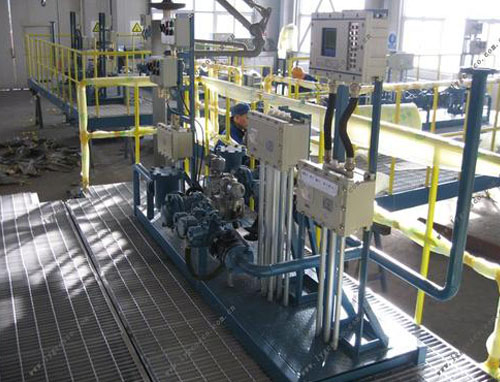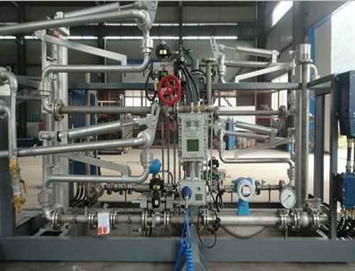 油品定量裝車橇裝組是指將每一個裝車鶴位內(nèi)的儀表和設(shè)備集成在一個專用的框架結(jié)構(gòu)內(nèi),儀表和設(shè)備包括裝車鶴管、流量計、防溢油靜電報警控制器、壓力變送器、裝車流量控制閥、緊急切斷閥,裝車泵、批量控制器等, 只預留工藝連接口和控制電源和通訊接口,這個整體集成部分稱為裝車橇。與傳統(tǒng)的裝車控制系統(tǒng)就地組裝比較,裝車橇可以節(jié)省現(xiàn)場設(shè)計和現(xiàn)場施工量,縮短項目工期,提高裝車控制系統(tǒng)的質(zhì)量。